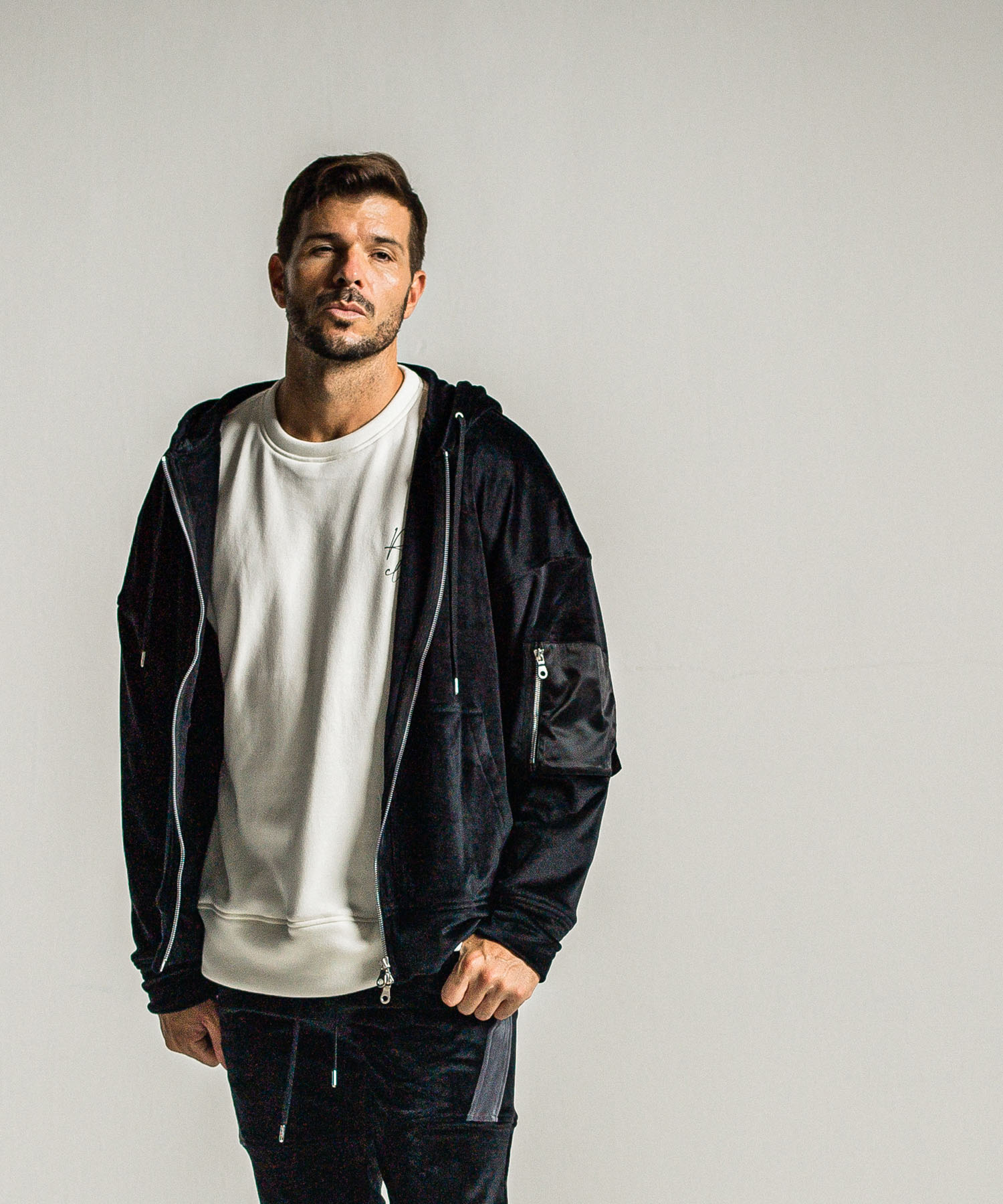 veloursfleece zip loose hoodie